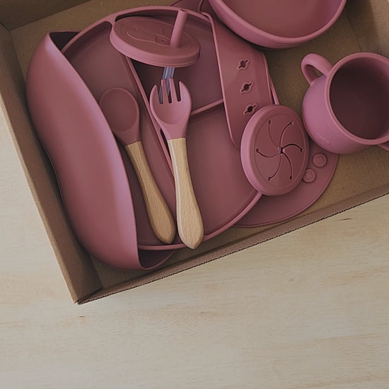 Todos los productos de esta vajilla para bebe Están hechos con materiales pensados en tu bebe, son blandos y 100% de grado alimenticio
