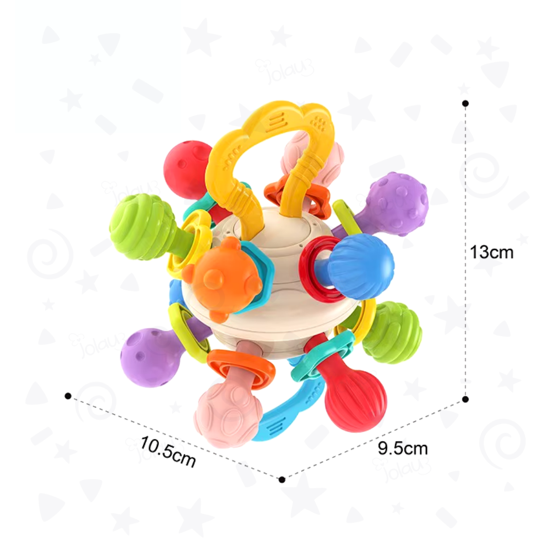Elaborado en silicona de alta calidad, sin BPA y de grado alimenticio. Todo en una sola pieza sin piezas pequeñas independientes y con un tamaño perfecto para manitos pequeñas de tu nene